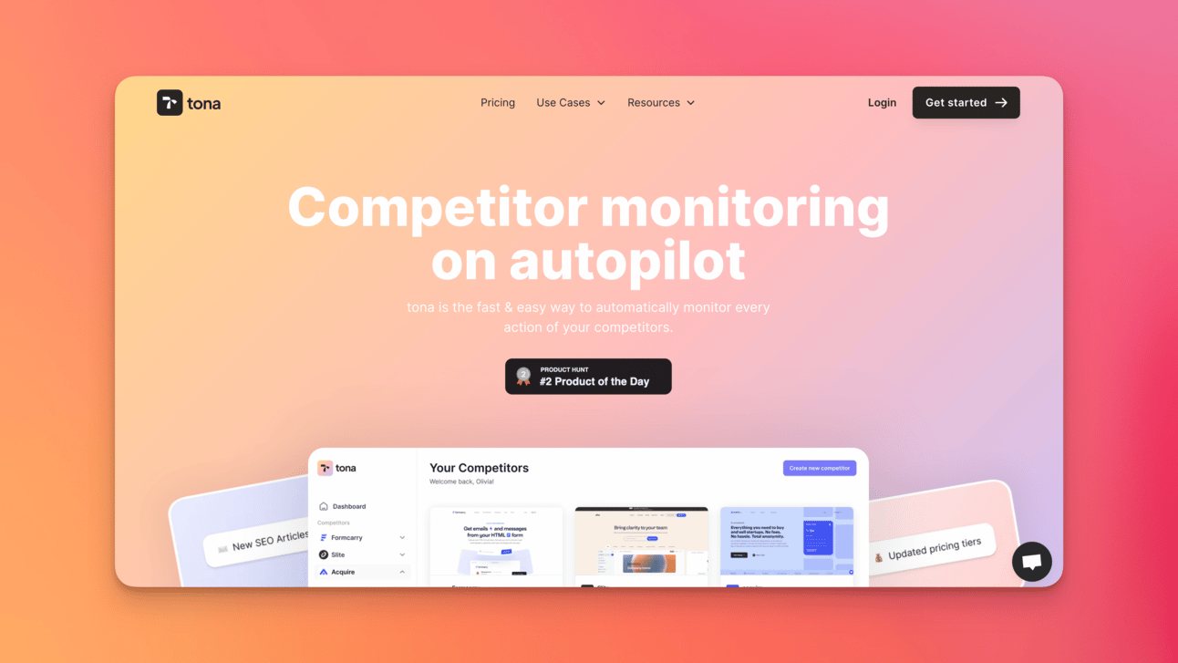 🚀 What is it and how does it work? Tona is an online software that allows users to automatically monitor their competitors.