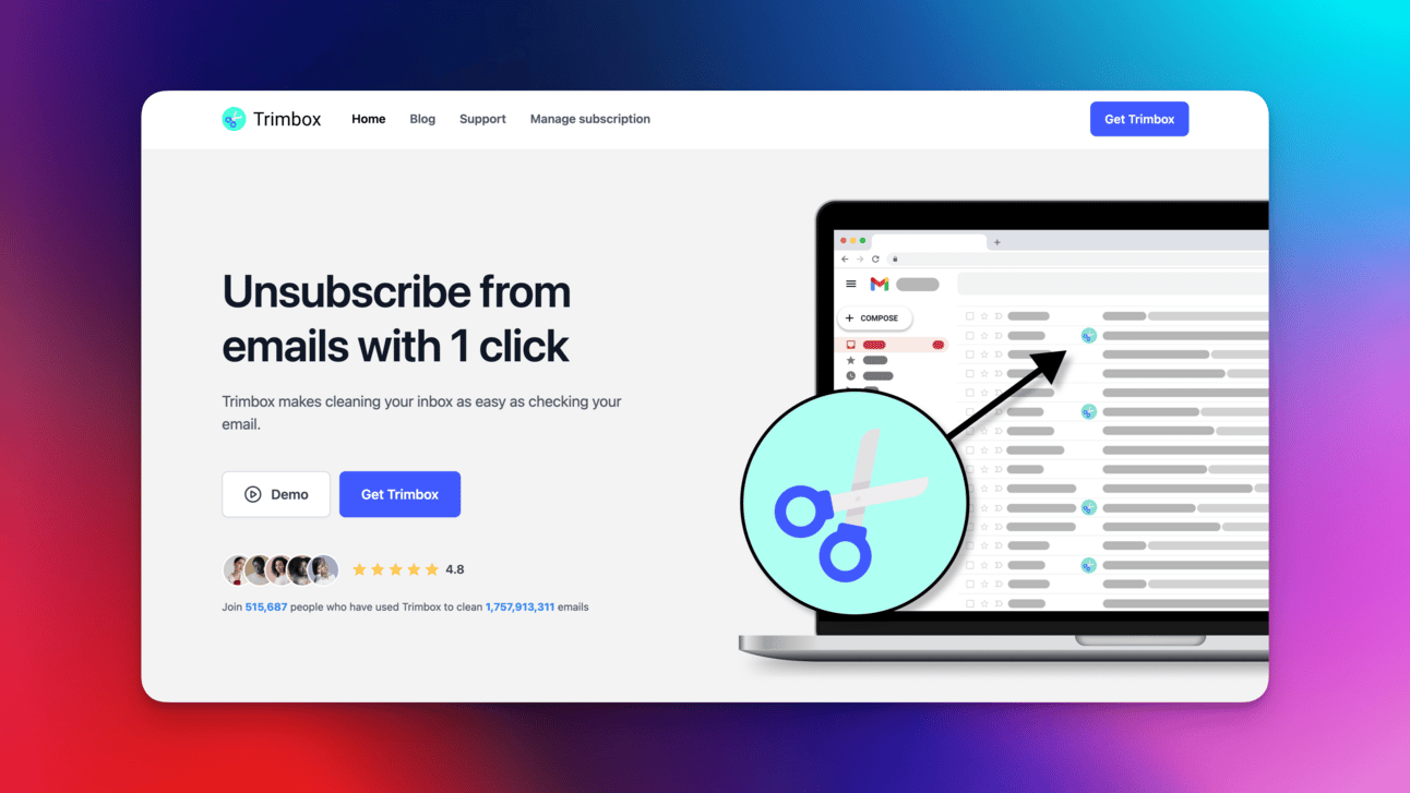 Get your inbox under control. Unsubscribe from email lists, sass delete old emails and clean up your inbox with one click.