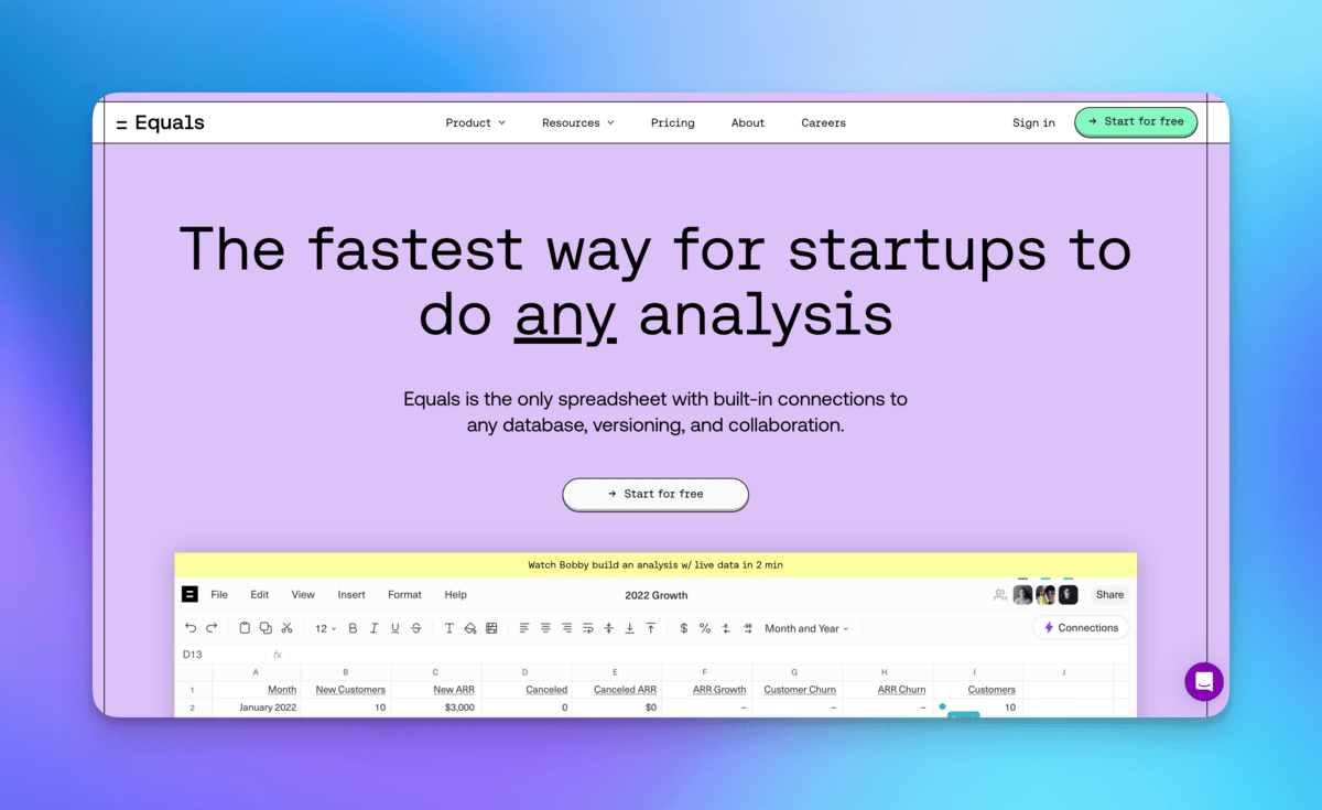 Looking for a platform to create graphs and analyze your startup's data quickly and easily? Try Equals and record all your data in no time.